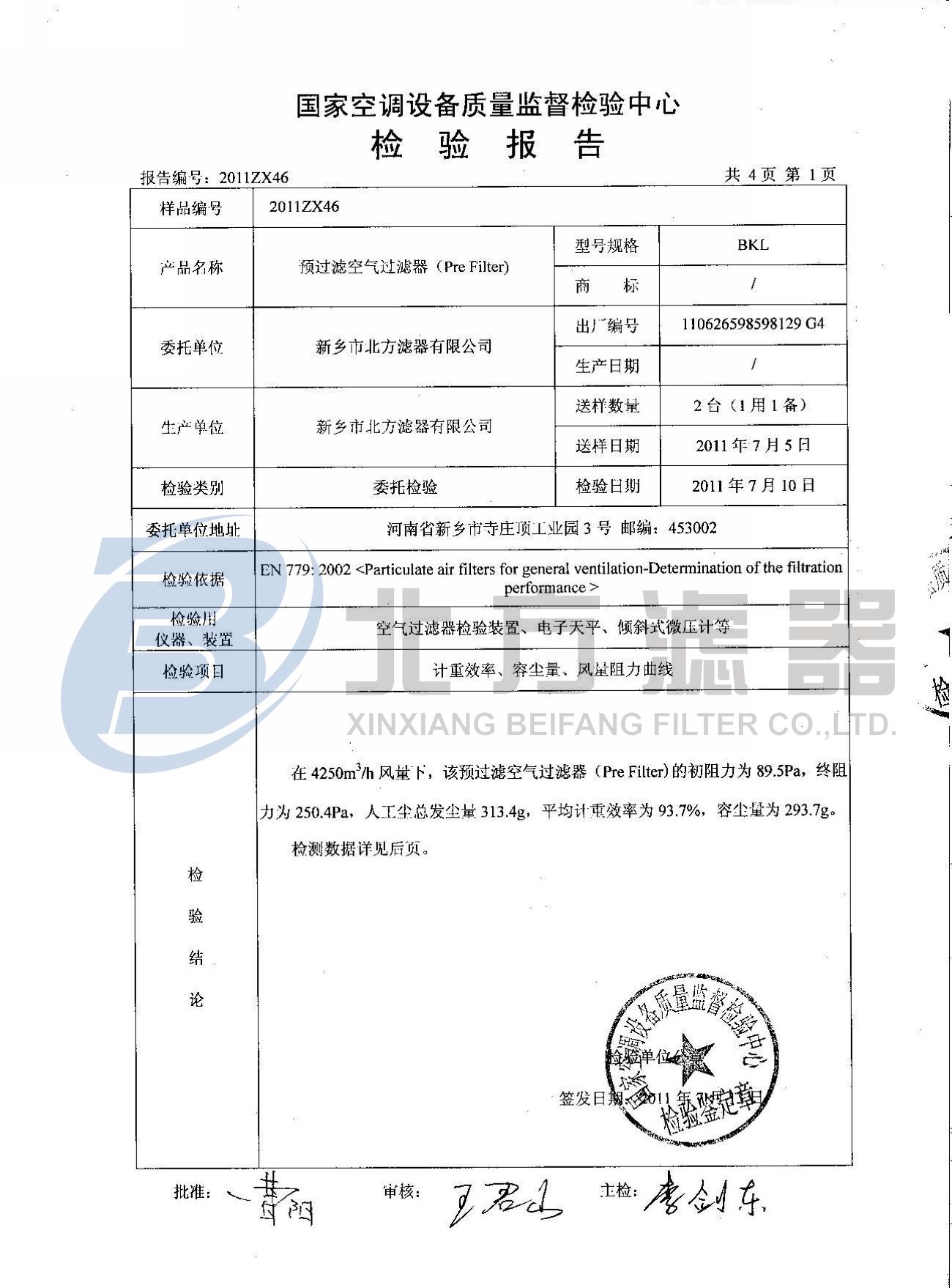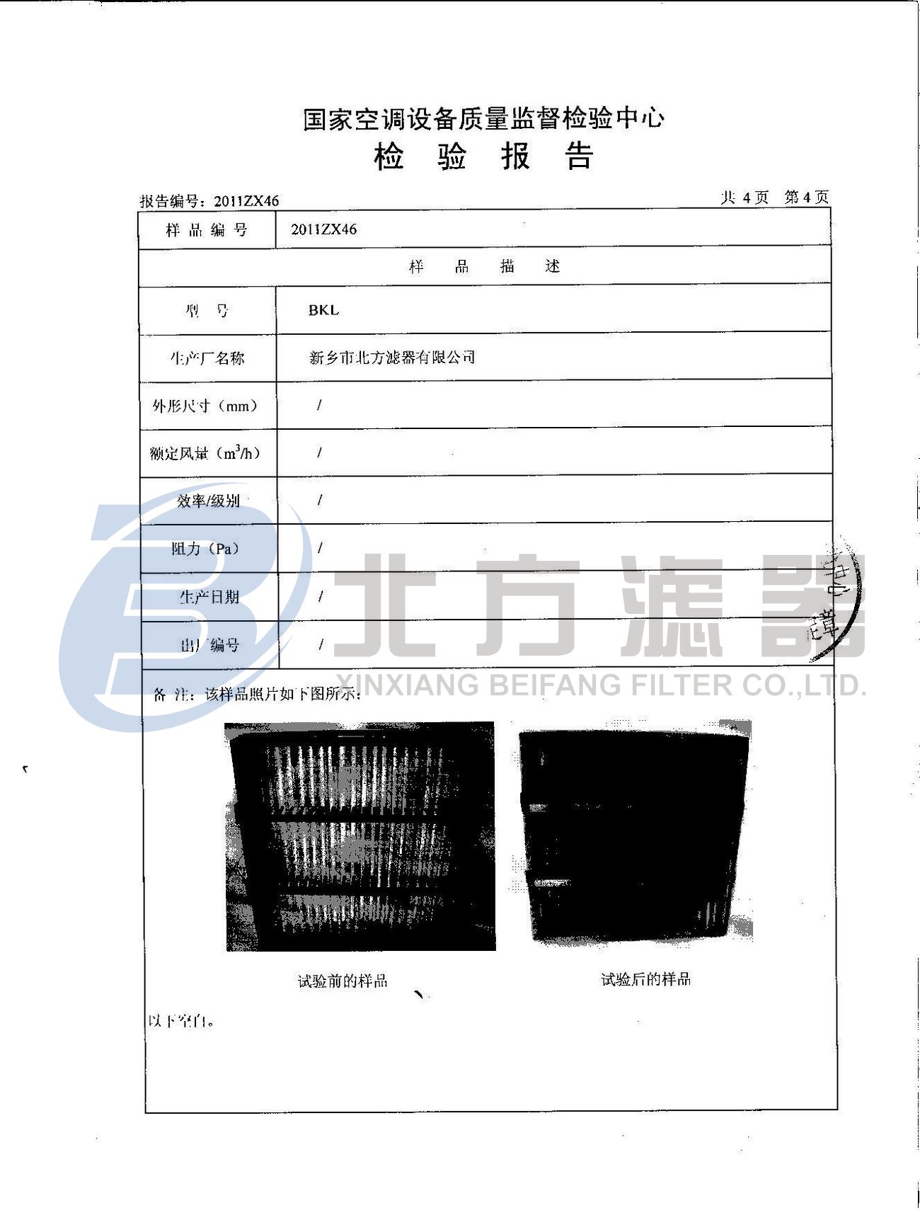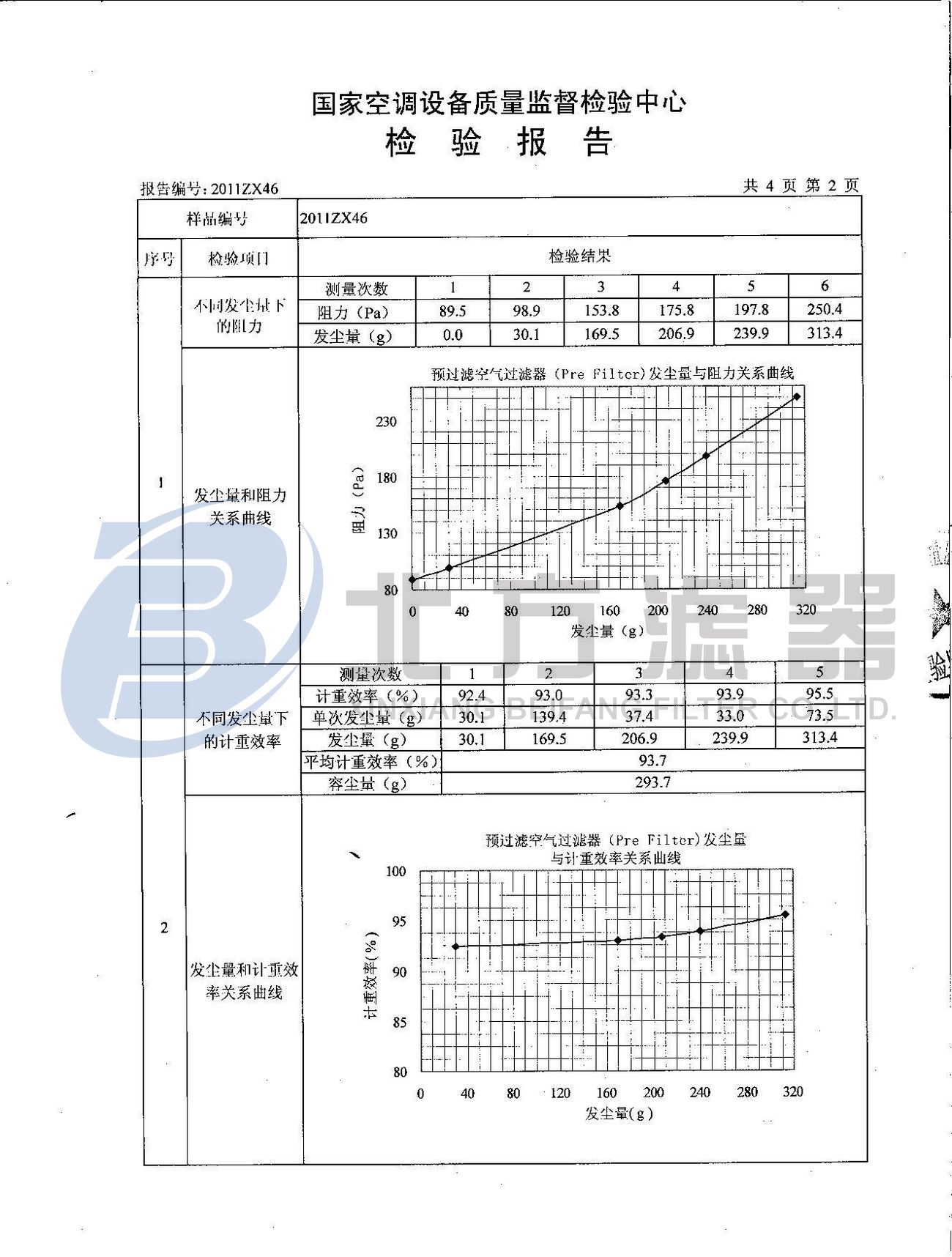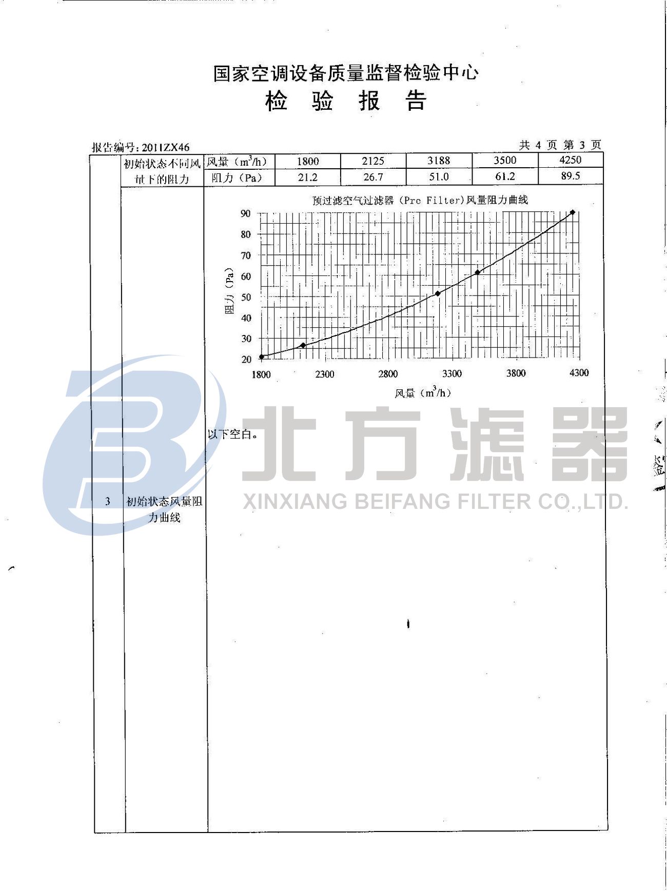 預(yù)過濾空氣過濾器檢測報(bào)告
